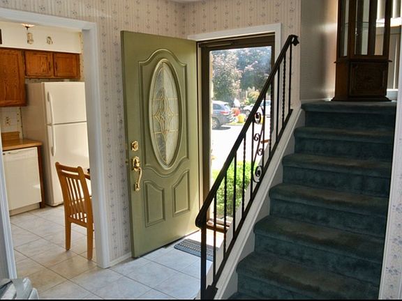 Desirable Abbott Commons Townhouse 2 bedroom 1 1/2 bath. Living Room features gas fireplace and sliding door that goes out to large deck overlooking Veterans Park. Formal dining room and eat in kitchen. Second floor laundry room. Full basement with high ceilings for game room, man cave, family room and/or storage. Newer central air and gas heat. Enjoy well maintained swimming pool, tennis and community room. Lowest maintenance fee $140.00.