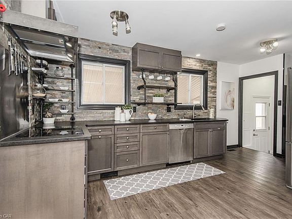 Get ready to fall in love with this beautiful West Galt bungalow renovated by Westmount Craftsmen located close to wonderful schools, trails parks and shopping! This open concept modern farmhouse design is sure to impress with stunning flooring throughout the main floor, stylish modern kitchen with custom wood cabinets and shelving, backsplash and stainless appliances and leathered granite counters. The spacious living / dining room combo is a wonderful space to entertain with sliders leading to a large entertaining backyard. Your main floor also offers two nice size bedrooms and newly renovated 4-piece washroom. Lower level has in-law potential with a separate entrance, large recreation room with pot lights, 3rd bedroom and 3-piece washroom/laundry room and area for a kitchenette. This home has had many updates including the roof, furnace, water softener with additional chlorine filter, vinyl luxury floors, bathrooms, kitchen, pot lights, mostly new windows and interior doors. Not only does this home have a private lot and cool modern vibe but this is your opportunity to live in a quiet mature neighborhood with inlaw potentail. Book a private viewing today!