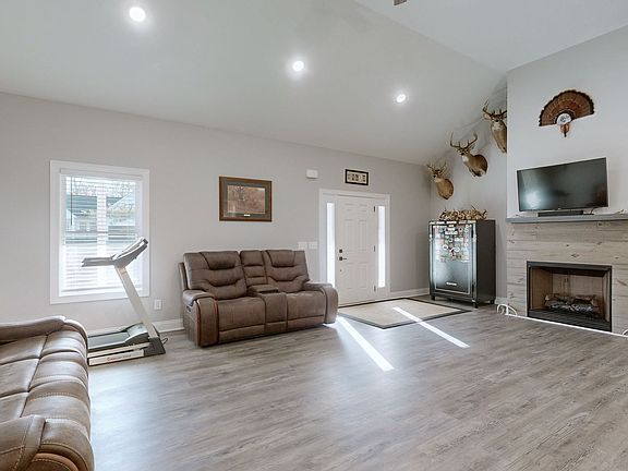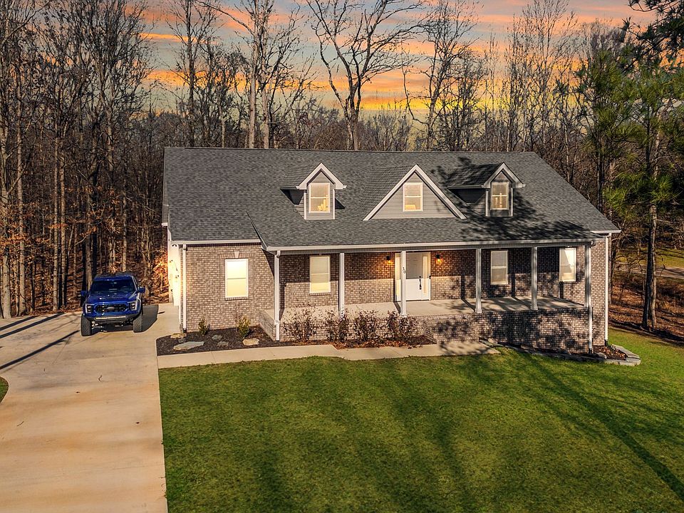 Discover your dream home built in 2023 with this gorgeous 3-bedroom, 2-bath gem on a 1-acre wooded corner lot. Step inside to an open great room and enjoy the convenience of a split floor plan, offering both space and privacy. The primary bedroom boasts an en-suite bath and a spacious walk-in closet. The kitchen is a chef's delight with ample cabinet space, solid surface counters, and a stylish tile backsplash. This home features top-notch finishes throughout, including ceramic and luxury vinyl plank flooring, custom tiled showers, and a cozy gas fireplace in the living room. Immerse yourself in nature with incredible outdoor spaces on both the large covered front porch and the serene covered back porch, perfect for entertaining or enjoying your morning coffee. Additional highlights include a double attached garage and the home's close proximity to town amenities and the Kentucky Lake, just 15 minutes away. Don't miss out on this exceptional property—your ideal home awaits!