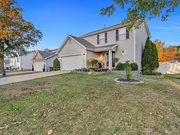 Welcome to this charming 3 bed, 2 1/2 bath, 2-story with a partially finished lower level! Enjoy a fantastic St. Peters location near the restaurants, shops, and services on Hwy K in O'Fallon. The exterior has updated vinyl siding (2014), enclosed fascia-soffits (2014), and roof and gutters (2014). The backyard is level, with an above-ground pool and deck, and offers privacy with a 6ft privacy fence. Features inside include laminate flooring throughout the main floor, updated light fixtures, an updated kitchen with stainless steel appliances and subway tile backsplash, a newer furnace & water heater (2018), and updated tile in the bathrooms! The partially finished lower level has a large Fam-Rec Rm/potential 4th bedroom, rough-in bath available, and laundry room with room for storage. Don't miss the opportunity to view this great listing. SHOWINGS begin Saturday 10/22!