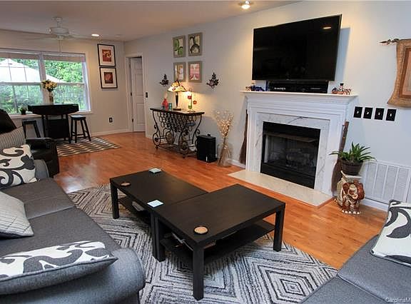 Easy living in this one level detached townhouse on ultra private lot adjoining large community green space. Open floorplan w/ tons of natural light, hardwood floors, granite counters, gas fireplace, and two car garage w/ pull down stair to attic storage. Split bedroom plan offers a spacious master suite overlooking the wooded back yard w/ walk-in closet, large jetted tub & separate shower. Low HOA dues cover exterior maintenance on this like new home.