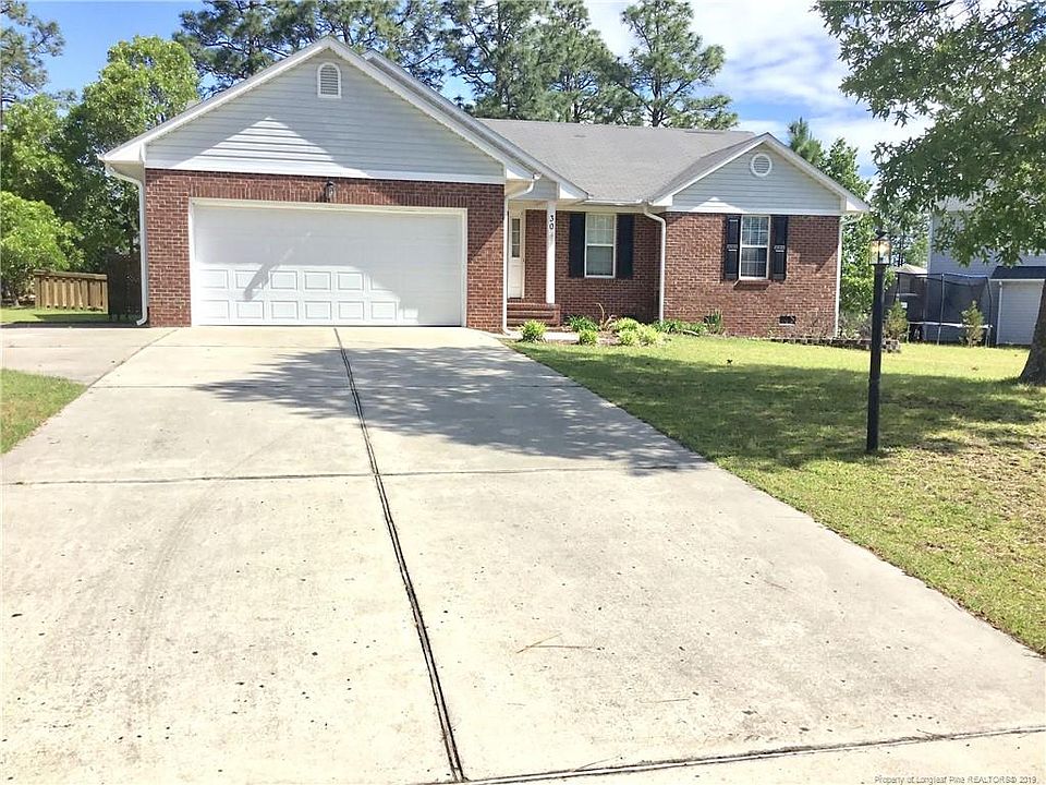 Adorable and clean 3 BR, 2 Bath ranch in desirable Carolina Lakes community! Open floor plan, vaulted living room ceiling, wood flooring in Living Rm & Kitchen. Great, spacious fenced in backyard and deck perfect for entertaining! Also has an extra parking pad to the side of the garage. Home is located on a quiet cul-de-sac street, close to the community pool. 20 minute commute to Ft Bragg. One of the best values in Carolina Lakes. Come see why this affordable home should be yours!