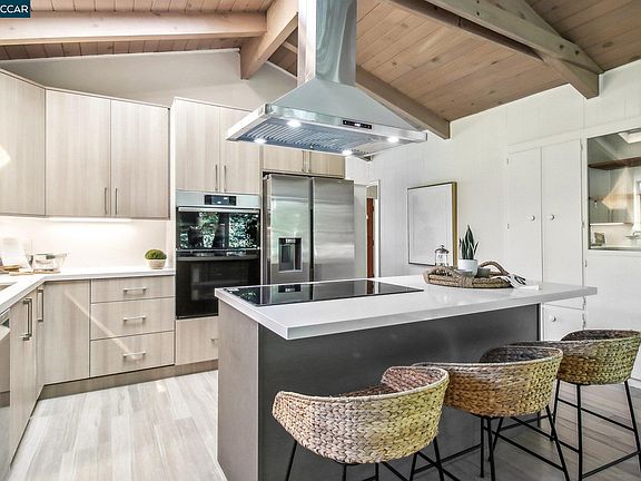 Great New Price! This stunning 3-bedroom, 3-bath home offers 2,486± sq ft of beautifully renovated living space on a private 0.28-acre lot. The main level showcases a dramatic formal living room with a wall of floor-to-ceiling glass, sleek gas fireplace, and seamless flow into a brand-new chef’s kitchen featuring European cabinetry, quartz counters, new stainless steel appliances, and an induction range. The large dining rm is encased in more glass with yard access. The spacious primary suite is adorned with windows, seating area, and a spa-like bath with dual sinks and an oversized walk-in shower and completing the main level. Downstairs, discover a versatile and convenient kitchenette, cozy family room with fireplace, large bedroom, and full bath — ideal for multigenerational living, an au pair suite, or potential attached ADU/rental opportunity. Mature backyard landscape with coveted flat space and corner privacy. Every detail has been thoughtfully updated, including new kitchen, bathrooms, flooring, cabinetry, counters, lighting, and interior/exterior paint. Great location offering ultimate privacy while being close to town, schools, and commute routes.