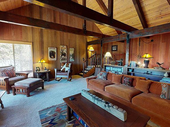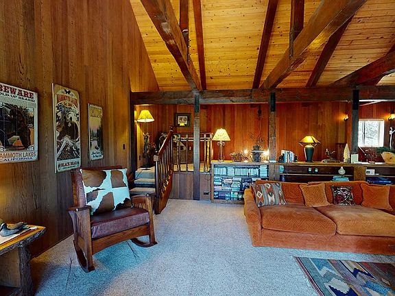 One of the largest Forest Service Cabins overlooking Lake Mary in the Lakes Basin in Mammoth Lakes. This 3,000 square foot cozy cabin has 3bedrooms, a loft, 1 full bath, 2 half baths, large game/bonus room, laundry area, and plenty of storage. It features dual pane vinyl windows, newer window shades, three gas fireplaces, new FAU system, stainless steel refrigerator, gas cook top, vaulted ceilings with ceiling fans, large living area, spacious kitchen, huge game room with a bar, pool table and plenty of places to lounge! The metal roof is newer, winter water access, trek decking on the large balcony with views of Lake Mary. If you been waiting for the perfect Forest Service cabin, this is it! Cash purchase only due to Forest Service leased land.