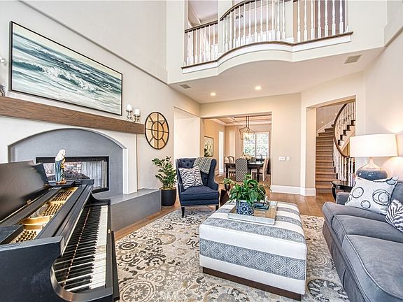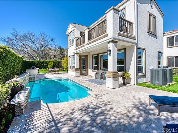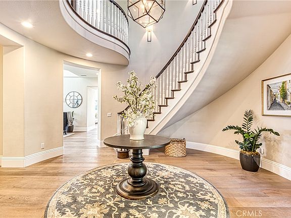 Nestled just beyond the gates of Coto de Caza, this updated corner lot Golf View residence is designed for both functionality and comfort. The grand entryway makes a lasting impression with its soaring two-story foyer, spiral staircase, leaded glass door, and wood plank flooring that extends seamlessly into the kitchen and family room. A dedicated main-floor guest suite plus an office that is framed by glass double doors and custom-built bookshelves, offering a sophisticated workspace. The formal living room and spacious family room are connected by a striking double-sided fireplace and are adorned with plantation shutters, plus a built-in entertainment niche. The open-concept remodeled kitchen is a chef’s delight, equipped with premium stainless steel appliances, a large island, and a breakfast nook. Upstairs, the luxurious primary suite offers a serene retreat with dual vanities, a spacious walk-in closet, a walk-in shower, a jet-spa tub, a cozy sitting area, and a private balcony showcasing breathtaking views of Coto's south golf course, complete with a picturesque pond. Down the hall are two additional en-suite bedrooms connected by a shared study space with built-in desks. The recent inside and out remodel make this a very special turn key estate. The backyard is great for entertaining and showcases a desirable southeast exposure with a sparkling swimming pool, a sun deck and a built-in BBQ island. Situated on a coveted corner lot along a single-loaded street, this home benefits from an adjacent recreational park and an open greenbelt across the way, creating an extended outdoor space perfect for relaxation and play. Experience the best of Coto de Caza, where premier living meets award-winning schools, a world-class Golf & Racquet Club, scenic sports parks, and easy access to hiking, biking, and equestrian trails. No Mello roos=low tax rate. Seller will consider selling furnishings