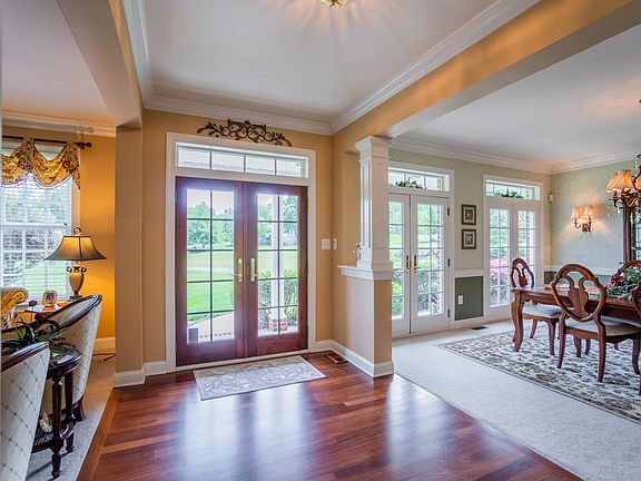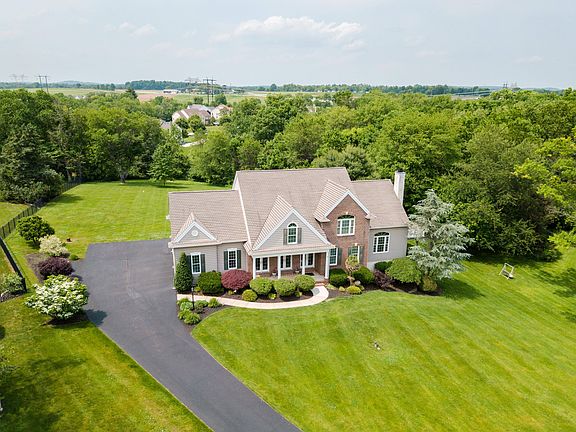 Tucked away down a long drive in a private community in Limerick Twp sits this beautiful colonial with pond views and just minutes from Rt. 422 and the Spring Valley YMCA. Custom built for the builder himself, the home has all the finishing touches you could want. The double door entrance foyer is adorned with hardwood flooring and saddles the formal living room and dining room. Both the living and dining rooms have crown molding, decorative chair rail and tons of natural light. The dining room has two sets of French doors. The family room has a two-story vaulted ceiling, cozy fireplace with brick surround and backs to a staircase with a landing view of this beautiful room. The kitchen has 42" custom cabinets, high level granite counters, a tumbled marble backsplash, a large center island with built-in cabinets, a built-in microwave and wine rack, stainless steel appliances and a six-burner gas cooking range. The dining area is lined with windows and leads to an impressive sun room with amazing views of the pond and glass sliders to a large low maintenance Trex deck with steps down to the yard. There is also a first floor laundry room, powder room and entrance to the 3-car attached garage. The second floor has an owner's suite with a tray ceiling, large windows with great views of the property, two spacious closets and an owner's bath with vaulted ceilings and a skylight, soaking tub, separate walk-in shower and two separate sinks. Three additional bedrooms, one a guest suite with its own bath and two other bedrooms that share a Jack and Jill bath complete this floor. The lower level is a walk-out to a brick patio and provides plenty of room for storage and is ready to be finished for additional living space. Additional upgrades include radiant floor heating in the sunroom, family room and owner's bath.