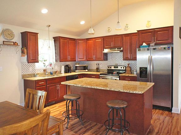 Only 2 years young. Offers stunning views. Beautiful ''Like New'' 3 bedroom, 2 & 1/2 bath home in Hedgerow Manor. Professionally landscaped & fenced in yard. Open concept. Features vaulted ceilings, custom kit. w/granite & SS appliances. Spacious LR & DR rooms, perfect master suite, bath, & WIC. LL FR offers corner floor to ceiling stone frpl. Private deck, lg yard & oversized garage. Cent. air.