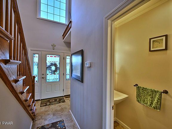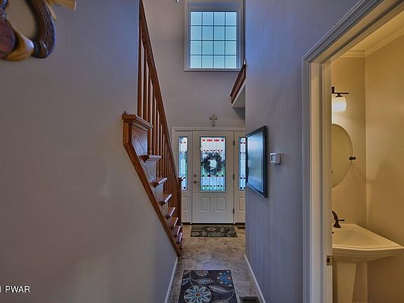 This beautiful home was built in 2009 and is located in a beautiful neighborhood in Jefferson Township, North Pocono School District. It has three finished levels including a huge family room and full bath in the lower level. The main level has a center hall entry, custom cherry kitchen with island and granite counter tops, hardwood floors, breakfast area with access to the rear deck, which offers beautiful views of all seasons, adjacent laundry room, living room with propane fireplace, formal dining area and half bath too! The second level has three bedrooms and two bathrooms including the master suite with vaulted ceilings. Central A/C and propane heating system. This home is rated energy star efficient. Central Sewer and private well.