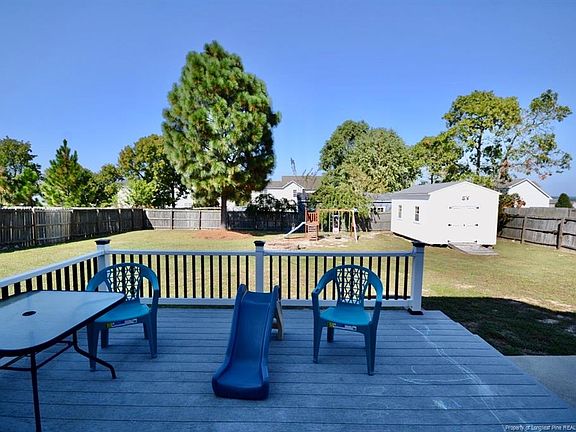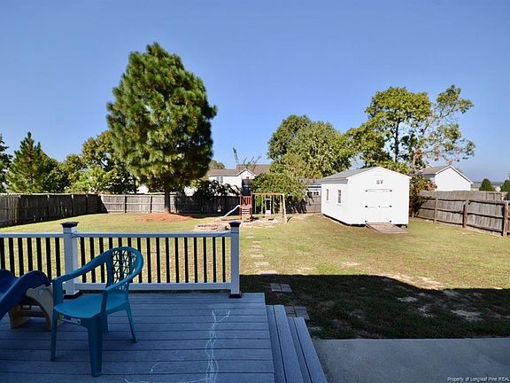 Fantastic 3 bedroom home plus a bonus/office in a cul-de-sac in a popular family neighborhood with an easy commute to Ft. Bragg. Spacious family room with gas log fireplace, formal dining room with trey ceiling. Kitchen with appliances, tile floor and pantry. All bedroom upstairs. Large master with His & Her WIV's, double vanity, soaking tub, separate shower and additional space that would make a great nursery/office. Large fenced backyard with a deck, swing set and irrigation system. 12x20 storage shed wired with electricity.