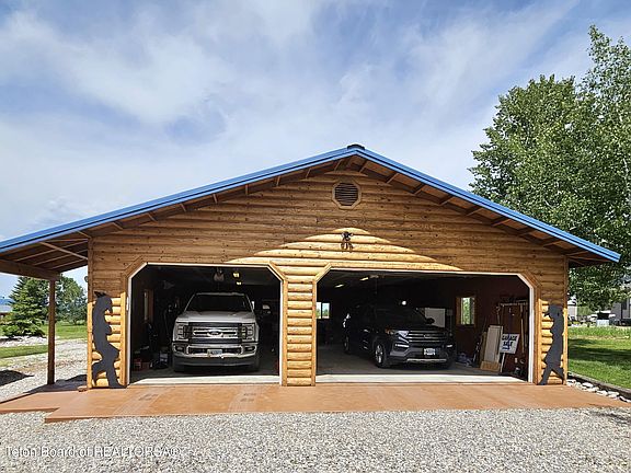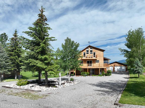 Stunning, 2-story custom built chalet located on the 8th fairway of the Cedar Creek golf course. 3/4ths wrap around deck and balcony off upstairs master bedroom provide spectacular valley and mountain views of Caribou, Tin Cup and Black Mountain. Spacious master bedroom on the upper level with a beautiful 3/4th bath. Main level offers stunning views and warm gathering places with a 1/2 bath. Downstairs has an additional bedroom/office, 3rd bedroom with adjoined 3/4th bath, laundry area, and family room. Property includes a detached 1152 sqft three car garage. The 173.8 sqft gazebo has fabulous potential. Let the sun paint the scene of beautiful color wash as it rises over the Salt River Range to the east and a morning sunrise of Cedar Creek Canyon from the kitchen window.