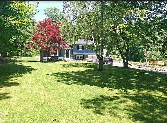Set back from the road on a quiet street, this completely remodeled split level home sits on 1.75 acres with your very own private pond. New roof, furnace, AC, siding, windows, drywall/insulation, bluestone walkway, kitchen and baths all completed in 2019, make this home completely turn key. City water and sewer hooked up in 2019. Closets galore, including a room-sized master closet, crown molding throughout, and marble floors and vanities in both full baths. White kitchen with quartz countertops and marble subway tile backsplash. Currently being used as a 2 bedroom, the family room on the half level down can easily be turned back to a third bedroom by replacing the door. Full basement for storage, large shed on property, and one car garage. Plenty of room for expansion or a pool. Please contact owner of property at 203-767-8675 for a private showing.