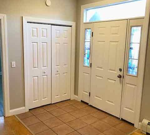 This apartment is located near the Portland-Falmouth line off Rt 9 in a country setting. Renters can be in the Old Port area by car in roughly 8 minutes. It has convenient access to 295, 95, Route 1 in Falmouth, and Northgate Plaza. The apartment is located on the first floor with 9ft ceilings is large with many windows. It has 2 bedrooms with 2 bathrooms, study and laundry room. Hardwood and tile throughout. Granite countertop and stainless steel appliances. Heat and hot water are included. Off street parking plus one garage bay. Lease and security deposit needed Owner pays for heat and hot water and snow removal