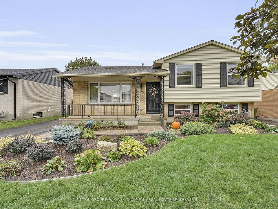 Nestled in a sought-after family neighbourhood, this beautifully decorated 4-level side split truly has it all. The charming curb appeal begins with a stunning front garden, new walkway, and inviting covered porch the perfect place to relax and unwind. Step inside to a bright and spacious living and dining area accented by newer windows and rich engineered hardwood flooring. The large eat-in kitchen offers plenty of space to gather, featuring newer cabinetry, stylish backsplash, and updated appliances. Upstairs, you'll find three generously sized bedrooms, all with engineered hardwood floors, and a beautifully updated main bathroom. The third level offers an impressive family room with a sleek linear electric fireplace ideal for entertaining or cozy movie nights along with a convenient powder room. The lower fourth level provides an abundance of storage space and endless possibilities for a workshop, gym, or hobby area. Enjoy summer days in your private, fully fenced backyard complete with a spacious deck and lower pressed-concrete patio perfect for barbecues and family get-togethers. The property has been freshly landscaped and includes a newer shed for all your lawn equipment. Major updates include a newer furnace, Life Breath, air conditioner, and roof, providing peace of mind for years to come. Located close to scenic walking trails, community parks, and excellent schools, this home offers the perfect blend of comfort, style, and location. Just move in, sit back, and enjoy!