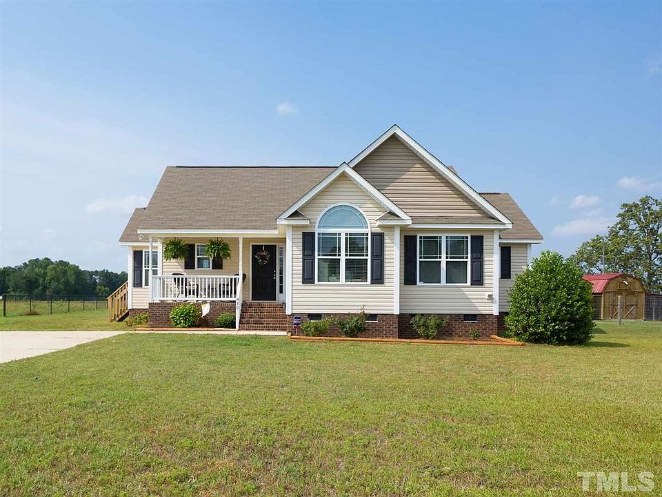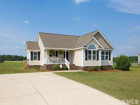 This home is just Darling! Adorable ranch home with 3 Bedrooms and 2 bathrooms. Rocking chair front porch. Vaulted ceilings in the living room with gas fireplace. Large kitchen with breakfast nook. Master bedroom has walk in closet and master suite bathroom has garden tub, separate shower, and dual vanities. Brand new paint through out home! Back yard is HUGE and backs up to farm land. Home is in the county, quiet neighborhood, and yet still an easy drive to Fayetteville or Raleigh! No city Taxes!