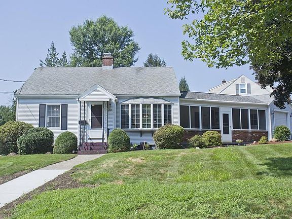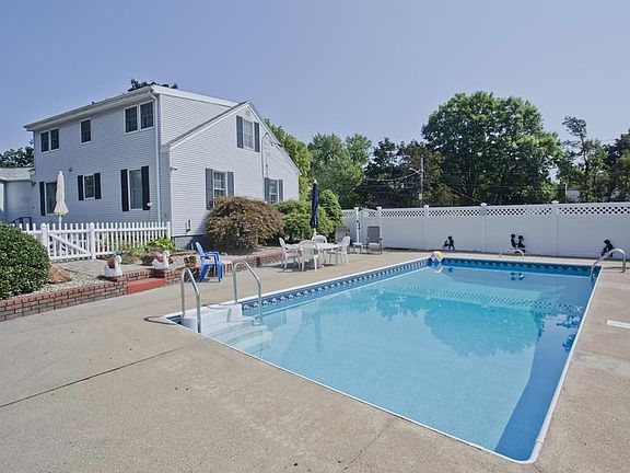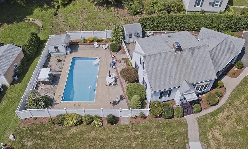 The moment you enter this stunning Cape on a professionally landscaped corner lot, you'll feel an ambiance of warmth and light. Could it be from the classic brick fireplace? Or the sun streaming through the bay window? Either way, the spacious living room welcomes you into a well-maintained home of more than 1,400 sq ft you're sure to love. Natural light leads the way to the dining area, followed by the eat-in kitchen that opens to a backyard oasis. Fully fenced-in, it has a patio area, in-ground pool, and two sheds - one with a bar for a quaint pool house! Back inside, all 3 bedrooms offer comfortable accommodations, especially the first-floor master with spacious closet. A partially finished basement offers rec space, workshop and plenty of storage. Plus, an alarm system, first-floor central AC, outdoor sprinkler system add convenience, and a newer driveway, furnace and oil tank save you money now. Experience it for yourself during the open house on Thursday 8/16 at 5:00pm.