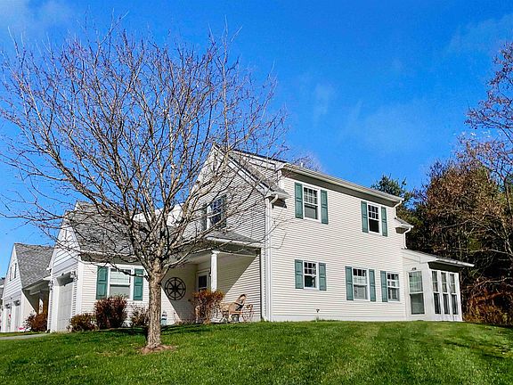 A very well maintained 3 bedroom, 3 bathroom end unit at Quail Hollow. For those looking for a peaceful and private 55 and older community, just minutes from Dartmouth College in Hanover, NH, Dartmouth Health in Lebanon and all of the other amenities that the Upper Valley of New Hampshire and Vermont has to offer. This bright condo offers beautiful brand new flooring throughout the 1st floor, a modern esthetic in the kitchen, cathedral ceilings in the living room, and central A/C for those humid summer days. Other features include: a large main floor bedroom with full en suite bathroom, first floor laundry, a private and refreshed 3 season sun room, handsome gas fireplace, finished garage, a Trex deck in the back, and many modern tasteful accents. A charming home in a great community. Please stop by for an open house this Sunday the 8th, from 10-12.