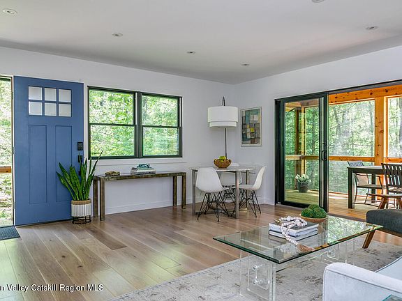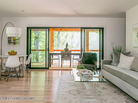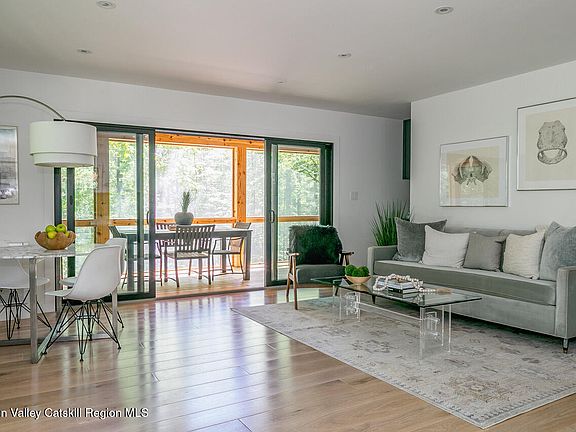30 Little Deer Rd — Redefining ''Cabin Fever'' in Style. Welcome to your chic, modern escape nestled on three private, wooded acres in Mount Tremper, just minutes from the vibrant village of Woodstock. This stunning cabin has undergone a full top-to-bottom renovation, transforming the traditional cabin experience into a luxurious retreat. Thoughtfully designed and impeccably finished, the home offers approximately 1,400 square feet of flexible living space, including one spacious bedroom and a versatile recreation room. The custom kitchen is a chef's dream, featuring premium custom cabinetry with a built-in pantry, elegant MSI Porcelain countertops and high-end Wolf appliances including a four-burner cooktop, range hood and a separate steam oven. A Miele integrated dishwasher and Liebherr integrated Fridge round out the appliance package, The kitchen seamlessly flows into the expansive living area, which comfortably accommodates both a dining alcove and a cozy lounge. Wide Plank White Oak flooring runs throughout the entire floor bringing a warm, yet elegant feel to the home. A beautifully integrated dry bar adds an extra touch of convenience and sophistication—ideal for entertaining or displaying your wine collection. Floor-to-ceiling glass doors open to a screened-in porch, offering seamless indoor-outdoor living. Enjoy al fresco dining with seasonal mountain views or unwind in the fresh mountain breeze from the comfort of your sofa. With doors open all summer long, the cedar porch becomes an extension of your living space. LED lights and a ceiling fan have been incorporated into the porch area to aid in complete comfort and relaxation. The primary bedroom is located on the main floor and exudes comfort and style. Generously sized, it easily accommodates a California king bed and additional furnishings and includes two closets. Dual exposures offer peaceful, wooded views, creating a true sanctuary. The adjacent full bath features a luxurious stone-clad stall shower and a sleek Miele wall-mounted toilet. Downstairs, discover a spacious recreation room that offers incredible flexibility—currently configured as a guest suite and home office. Whether you envision a second bedroom, a creative studio, or your own private screening room, this level adapts to your needs. It also provides direct access to a second outdoor deck and includes a washer and dryer for added convenience. Additional features include a whole-house on-demand generator and individually controlled split-system A/C and heating units in every room. Luxury living in the Catskills has never looked, or felt, so good.
