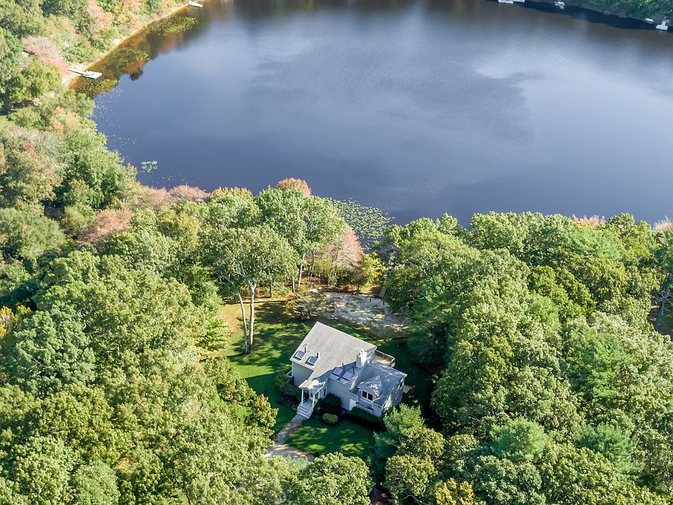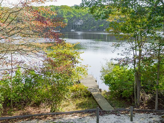 Located in a serene setting, with private pond access and its own dock, this 2100sf+/- cottage exudes both charm a comfortable Adirondack style right out of On Golden Pond. Situated directly on Little Fresh Pond, with magnificent views throughout all seasons, this pristine. well- maintained home is truly a waterfront gem, with extensive backyard decks for entertaining at the water's edge, green lawn that rolls down to the pond and manicured vegetable/kitchen gardens, all on 0.71+/- acres. The home was completely renovated and expanded in 2003 that included the addition of a detached 2-story, 2-car garage. All mechanical systems were upgraded; all new windows, doors, new irrigation installed; & extensive landscaping was performed. Included in the price are 2 additional adjacent lots that also front of Little Fresh. The vacant lot adjacent to the home is .61 acre and is ideal for a legal guest house, pool house or garage. The 3rd lot gives you additional privacy ensuring peaceful enjoyment year round. The total acreage of all 3 waterfront lots is 1.53+/-. With a contemporary exterior, the house conveys the very essence of the modern Hamptons retreat. The loft-style interior has soaring ceilings and is flooded by natural light from the bank of windows facing the pond and the skylights above. The second floor master suite offers panoramic views. Additional features include a detached 2 story garage that has studio/office space on the second floor and an outdoor shower. A magical opportunity to own a quiet and stylish refuge with close proximity to all that Southampton has to offer.