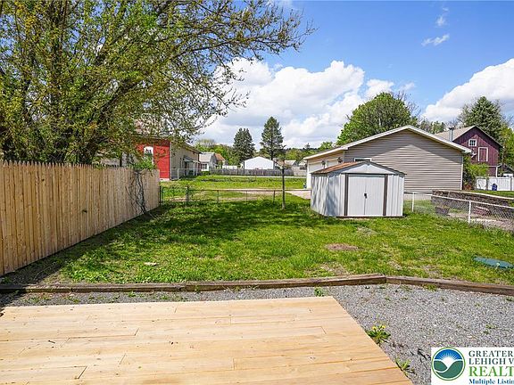 Welcome to this charming 3-bedroom, 2-bath home located just minutes from downtown Palmerton! This well-maintained property offers fantastic curb appeal with a covered front porch, perfect for relaxing. The fenced backyard features a newly installed deck and shed, providing great outdoor space for entertaining and storage. Inside, the main level boasts a spacious living room that flows seamlessly into the dining area, a kitchen with recent stainless steel appliances, convenient first-floor bedroom, and a brand new full bath. Upstairs, you’ll find two additional, large sized bedrooms and another full bath. Plenty of storage with cubbies and unfinished attic. New front porch roof. New carpet in living room and one of the upstairs bedrooms. A perfect blend of comfort and convenience—schedule your showing today!