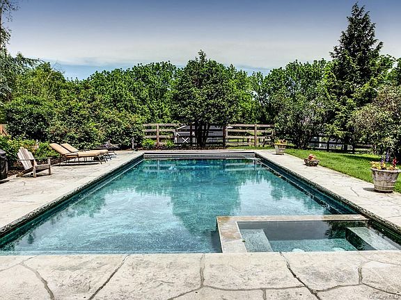 Stunning Sunset views in Warwick, NY! Enjoy complete privacy set atop a hillside on Little York Road, no neighbors in sight. Enter to a bright two-story foyer with a sweeping staircase and handsome dark hardwood floors. The stylish gourmet kitchen with an oversized granite top island, Subzero Fridge, Viking Range and Bosch Dishwasher, flows through to the dining room, living room & sunroom as a cohesive floorpan perfect for entertaining. Oversized windows throughout the front of the house look out to the incredible mountaintop views; the views stop you in your tracks as you walk room to room. The expansive cathedral ceiling living room features a two-story custom fieldstone fireplace, and opens up to a spacious rear patio and gunite pool and spa designed with expert masonry craftsmanship. Upstairs is a master suite with views, a claw-foot soaker tub, walk in closet and private balcony. An office, 3 other bedrooms w/vaulted ceilings & 2 recently renovated hall baths complete the 2nd floor. The Party continues in the basement with a full bar and large-screen projection family room. Additional space in the basement currently used as a workout room. The outdoor possibilities are endless: 30.8-acres with a 7-Stall Barn & Loft space above, and a run-in shelter, and fenced pastures ready for horses and goats! Perfect sunlight and open space for a garden. In addition to the great views, pretty finishes and versatile land, you can rest easy knowing that you have a full house 20,000 watt generator, low taxes because of an agricultural exemption (Only $19,000), option to subdivide in the future, and so much more. Warwick Valley School District, and only 10 minutes to the Historic Village of Warwick, 50 miles to NYC. Inquire for more details & come see for yourself!