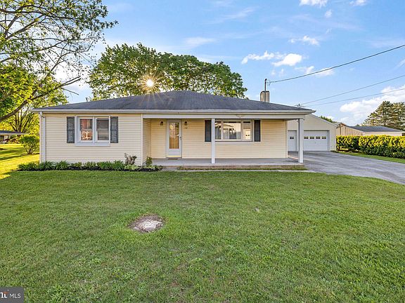 Wonderful rancher built in 1956. Exterior is block with siding over the block. Waterproofed basement. Newer oil furnace, almost all of the rooms have hardwood with carpet covering them. Huge kitchen. Home has replacement windows thru-out, huge lot at 1.73 acres. Four detached buildings including a large 24' X 30' pole building and a 25' X 33' detached garage with concrete floor and double doors along with electric sub-panel box and hook up for wood or pellet stove. In addition to two garages are two additional large sheds. Living room has hook up for pellet or wood stove. Lower level has a large bar and storage area. Electric service has been updated with grounds in all receptacles.