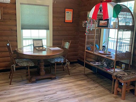 Gorgeous real log home! All the finer touches and upgrades. Wonderful floor plan one bedroom on the main level, two bedrooms upstairs with a beautiful bathroom. Private, end of the road, huge carport, fun fire pit area undercover, Garden space, paved road, stainless appliances, cozy fireplace, lots of little work spaces. So much more. A must see! 24 hours notice plz.