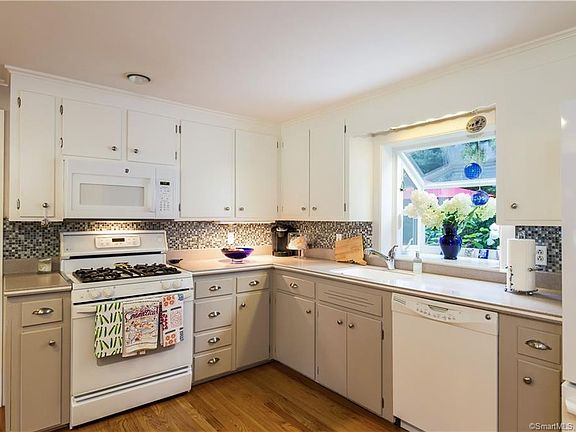 Quintestial expanded New England Cape in highly desirable neighborhood. Location, location, location, close to shopping and local amenities. Kids actually play in the street. This house has it all, Huge Master suite, with dressing area, office space, master bath and wonderful closet space. There are 3 more generous bedrooms up stairs with the possibility of a 5th bedroom on the main level. Two full baths up and one full bath on the main level, if you are in need an in-law situation, this may work. Laundry/mudroom also on the main floor. Open kitchen, great functional space for entertaining. Hardwood throughout. Finished lower level with fireplace. This house has been beautifully maintained: new roof, new furnace, new a/c, replacement windows, recently painted. Professionally landscaped private yard with new expansive patio and pergola. Sunny and bright.
