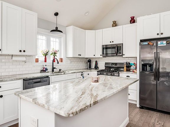 Welcome to your next chapter in the charming town of Henniker! This inviting 3-bedroom, 2-bathroom raised ranch offers a thoughtful layout and spacious living areas designed for both relaxation and entertaining. Step inside to find a generous kitchen with stainless steel appliances, a center island perfect for gathering, and an easy flow into the dining area. From here, step out onto the back deck or into the open living room, where cathedral ceilings and a cozy gas fireplace create a bright, airy space that feels like home the moment you walk in. The main level also includes a private primary suite complete with an ensuite bathroom and walk-in closet. Two additional bedrooms and a full bath provide ample space for family or visitors. Downstairs, a large family room offers room to unwind, along with a flexible bonus space ideal for a home office, gym, or guest accommodations. Outside, enjoy a back patio perfect for summer evenings and a spacious backyard where kids and pets can roam. The attached two-car garage adds convenience year-round. All of this is nestled in Henniker, a quintessential New England town known for its scenic beauty, community spirit, and four-season recreation—from skiing at Pats Peak to hiking, paddling, and lively local events. Don't miss out on your opportunity to call this house your home - schedule a showing today!