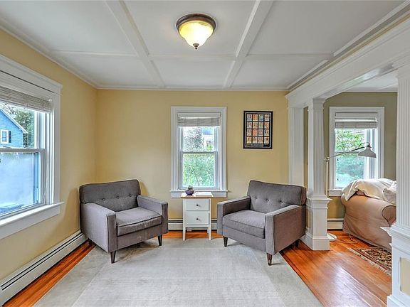 Sophisticated and updated, this 3-bedroom, 2.1-bath East Side home sits steps away from the cafes and restaurants of Hope Street. The sun-filled interior pleases the eye with hardwood floors running through the living spaces, while a corner wood stove adds cozy New England charm. The dining room sits off the new eat-in kitchen with granite and stainless steel appliances, a center prep island, and stone countertops. A smart office space greets you at the second-story landing, followed by 2 bedrooms and a primary bedroom with double closets and a jetted soaking tub in the tiled bath. The wonderful city yard, with a garage and bonus shed, lends extra serenity to this move-in ready home. Visit the campuses and museums of Brown University and RISD. Take in the scenery of Blackstone Boulevard or stop by the farmers market at Lippitt Park. The interstate and downtown Amtrak station provide easy commutes throughout the Northeast Corridor.