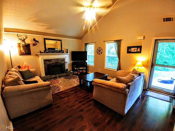 Beautiful ranch style home on large 2.5 acre wooded Cul de Sac lot. Conveniently located near Conyers and Covington, this 3 bedroom 2 bathroom house boasts vaulted ceilings in the family room, kitchen, and master bedroom with laminate hardwood flooring through the areas. The open fireplace adds the perfect touch when entertaining guests or enjoying a cup of coffee. The large master bedroom and recently updated master bathroom await with a large garden tub and separate shower.