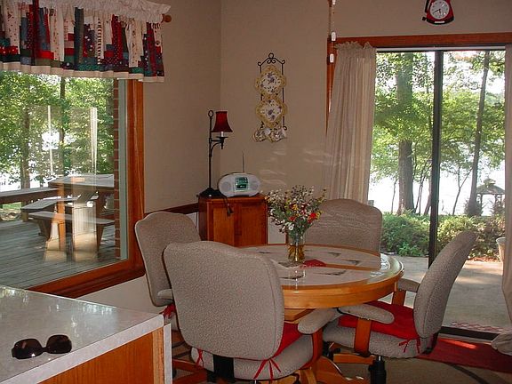 Amazing property with 2 gentle sloped main lake lots with a total of 1.85 acres and 254 ft of waterfront in seawall with a double slip covered boatshelter with lifts, storage and dock. Boardwalk leads to the 4 sided brick ranch home with large screen room and huge deck. 3 bedroom 2.5 bathroom with kitchen and breakfast ares with large window and sliders to patio and deck with wonderful main lake views. Large living area with vaulted ceiling and fireplace. Master bedroom with trey ceiling and master bath with large tile shower, jetted tub w/ tile surround & double sink vanity. Two guest room (one currently used for a sewing room) full bathroom in between. Foyer area and Half bath /laundry area. Two car attached garage with workshop. Provided many loving family memories at Lake Sinclair