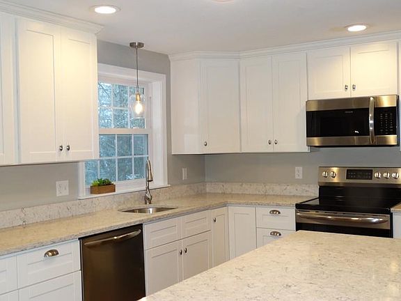 Welcome Home! Impeccable class outshines the rest! Everything remodeled in this raised ranch. Paved walkway leading you to the inviting entrance of this splendid home placed at the end of a cul-de-sac. 3 bedrooms, 2 full baths, new roof, new windows, new siding and new gleaming hardwood floors on main level. Enjoy cooking in the remodeled kitchen with custom cabinets, granite, and stainless-steel appliances opening to the dining and living area. Formal living room has a tastefully designed floor to ceiling custom painted fireplace. Terrific open floorplan for entertaining. Step down to a spacious family room from dining area with wainscot and beautiful views of your private back yard. Lower level has front to back additional family room/den with new wall to wall carpet. Laundry room, and a full bath on lower level as well. Private wooded yard. Enjoy the Walking distance to mirror lake.