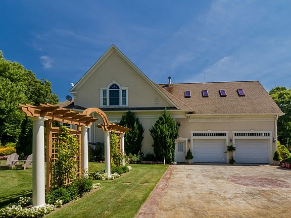 Presenting one of the most unique and magnificent custom built homes in the seaside community of Touisset in Warren, Rhode Island. This luxury residence offers over 6,000 square feet of living space with soaring cathedral ceilings that gives an incredible sense of spacious openness. Step inside through the grand barrel vaulted columned entrance portico and discover an interior perfect for luxurious modern living. Find yourself surrounded with the finest molding and woodwork and gleaming Brazilian Cherry hardwood flooring throughout. Marvel at the magnificent curved stairway with its unique wrought iron railing forged by a local artist. To the left of the foyer is a cozy home office with a gas fireplace and transom window French doors for privacy. Entertain in comfortable luxury in the formal dining room boasting an eye catching chandelier, classic wainscoting and a unique double tray ceiling with dental molding trim and rope lighting for ambiance. The home’s living room is simply stunning! The focal point of the room is the incredible 20’ stone fireplace with a hand carved wood mantel. Adding to the allure of this room are the stately columns, custom moulding, and 3 sets of French doors with an arched window above that allow for bountiful natural light. Open to the living room is the heart of the home…the spectacular chef’s kitchen and bright dining area for casual meals! Every inch of the cabinetry is custom designed, there is a professional gas stove, double ovens, granite countertops, 2 sink areas, counter seating for six, a beautiful window seat with storage in the dining area, and a double tray ceiling with rope lighting in the kitchen and dining area. To complete the home’s first level is a marvelous master suite. Relax in complete splendor in this spacious 22’ x 16’ room with double tray ceiling with rope lighting, stylish chandelier, and custom moulding. The spa inspired master bath boasts a double vanity sink, “his & hers” walk-in closets, marble flooring, 8 spray walk in shower, Jacuzzi tub, and private facility room with pocket door. Ascend to the second level and marvel at the unique landing overlooking the living room with its hand built Cherry and Walnut curved bookshelf. There is an additional master suite on the 2nd level with an added surprise in the walk-in closet…a door that opens to attic storage space! The bath features marble flooring and double vanity sink. There are two additional spacious bedrooms with a “Jack & Jill” bath. Step outside and take pleasure in a private backyard oasis! This lovely patio overflowing with gorgeous flowering plants provides the perfect backdrop for all of your outdoor entertaining. The outdoor kitchen outlined with a stone wall has a built in Viking gas grill, two burner cooktop, fridge and ice maker, sink, and granite top. A matching granite outdoor dining table can accommodate eight guests. Sit by the fire on cool evenings with the backyard stone fireplace with cozy sitting area. This beautiful outdoor area also boasts a handy potting shed, beautiful hand built trellises, sprinkler system and outdoor speakers and lighting. This private Touisset estate is absolutely one-of-a-kind!