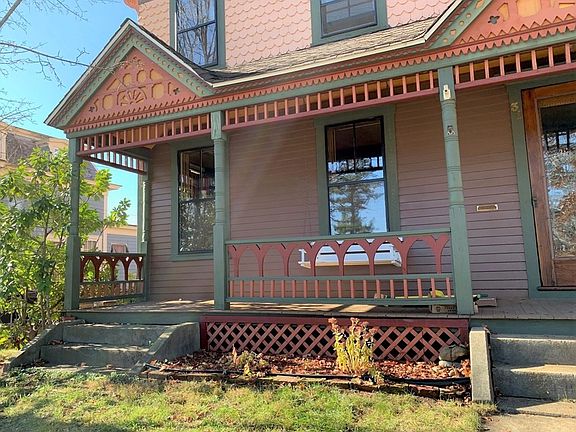 Beautifully maintained Victorian with large porch and swing to relax and enjoy the outdoors. A grand beauty with attention to detail filled with character and charm. Hardwood flooring throughout. Welcoming front entry, living room has gorgeous wood french doors, beautiful cornise molding, natural lighting, large stately dining room with built-in china cabinet, decorative fireplace and wall sconces. Off of dining room is a sun-filled heated sunroom to enjoy. Large kitchen with custom cabinetry, new stove and refrigerator, large pantry and large storage room for extra storage. Half bath off kitchen. Nice side entrance from kitchen to fenced small backyard to enjoy with koi pond. 2nd floor has 3 bedrooms, linen closet and full bath. 3rd floor offers more space for a bonus room, home office, game room or additional family room. Home is located across the street from a large park that has so much to offer, tennis courts, baseball field, gazebo, basketball court. Nothing to do but move in