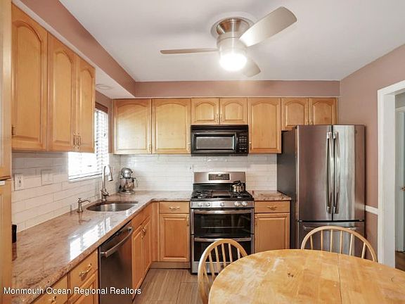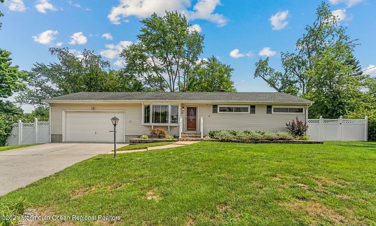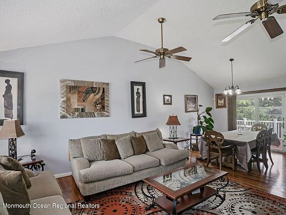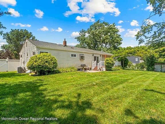 Lovely, well maintained Ranch home with curb appeal! Located in the Jumping Brook area, this 3 bedroom, 1.5 bath home has a finished walk-out basement, updated kitchen with granite counters and newer appliances, updated hallway bath, 2 car garage, Pella brand bay window, newer sliding door and newer entertainment-friendly, maintenance free rear deck. This home also boasts hardwood floors throughout, cathedral ceilings, 100x100 yard for entertaining. This area is desired because of its very convenient commuter location only 5 minutes from the Garden State Parkway. Walk if you like to Jersey Shore Outlets, Home Depot, Walmart and more! Roof is approximately 9 years old, Central Air is 6-7 years old. Make your appointment. Quick close is possible.
