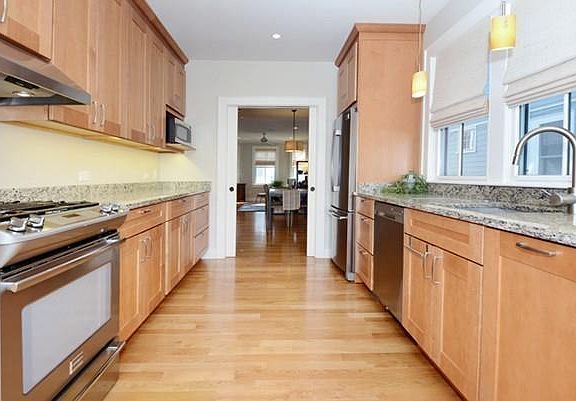 Incredible light filled 2 bed 1.5 bath unit just 1 block from the beach! Enjoy the entire first floor of an owner occupied 2 unit building. Property was completely renovated to the highest standards in 2013 and has been gently lived in since. Hardwood floors throughout. Kitchen features granite counters with ample work space and is fully equipped with stainless steel appliances. Kitchen opens to large living and dining space. 2 queen bedrooms with shared full bath plus half guest bath off living room. Shared covered front porch and private covered rear porch both make for great outdoor living all summer long. Large additional storage and private laundry room in partially finished basement.1 detached garage parking space included in rent. Additional parking may be negotiable.