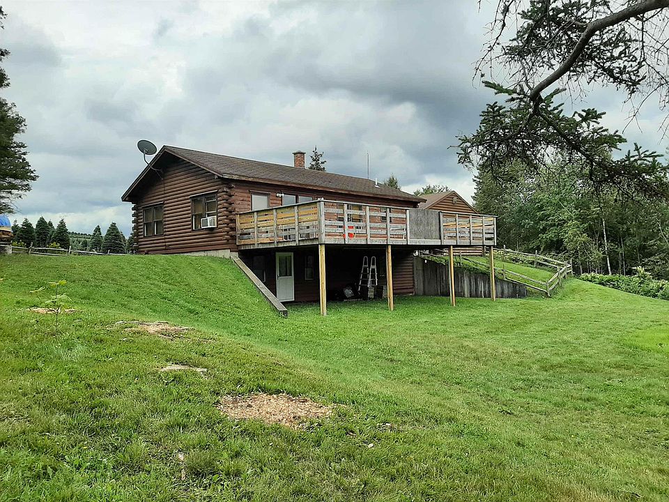 Move to Columbia on a country paved road! Enjoy being a few minutes back to town, nice views and a great front yard with apple trees and plenty of room for gardening. This ranch style log home has an easy flowing open floor plan with bedroom and full bath on first floor. Livingroom with cathedral ceiling, nice corner wood stove and sliders onto huge 15x37 deck. Basement level is a walk-out set-up for a family room and two more bedrooms giving more living space. 1/2 bath and plus laundry area in this level as well. One car garage is perfect for your recreational vehicles. A covered area attached to the garage with concrete floor for more storage or as a place to sit overlooking the views and perfect for grilling off the kitchen. Wonderful location.