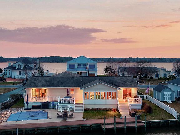 Coastal Living at its Best! ⚓ Beautiful 4 bedroom, 3 bath home located on the Old Landing Peninsula with spectacular water views from nearly every room 🌅 Enjoy the sunrise in the morning from the rear sunroom and the sunset from the front porch or living room ☀ This waterfront location offers 100 ft of easy backyard access to your boat and wave runners for a quick commute to Rehoboth Bay! 🚤 Pride of ownership shines throughout the home 🏡 The inviting front porch leads you to the open floor plan with expanding wood floors and water views! ♥ The great room (30x35) includes floor to ceiling water views that feature a living room with an electric decorative fireplace, accent lighting, recessed lighting, ceiling fan and plenty of natural light! There is a media room that is home to a surround system and offers storage. The dining area offers water views with a large wooden table for seating for up to 9-10 guests. The Kitchen features stainless steel appliances including a built in Kitchen Aid refrigerator (2020), white cabinetry, island seating for 3, pendent lighting and concrete counter tops. Pantry closet off kitchen with shelving. French doors to the sun lit sunroom with 2 exterior entrances to decks. Sun room includes a mounted TV with ceiling speakers, this room is a favorite dining spot. The rear exterior offers mature landscaping (beautiful daisies in the Spring & Summer), multiple decks with a Blackstone that is ready to host all your Summer fun! There is a frost proof yard hydrant at the dock for easy boat cleaning. A floating dock is available for 2 wave runners, ladder from Bay for easy access. In-ground pool with newer heater, liner and new solid cover and pump. Pool storage container for the floats and toys. There is a bedroom/office off the living room facing the front of the home with closet, recessed lighting and ceiling fan. A ceramic tiled bathroom right off the hall is perfect for guest access, all bedrooms feature closets, carpet, ceiling fans and water views. Primary bedroom with sliding glass door, electric vertical blind, ceiling fan and a professional organized walk in closet. Primary bathroom is neutral with a jetted soaking tub, large walk in shower and a double sink. Laundry room with storage cabinets. Oversized garage with epoxy floor, 2 large mounted ceiling racks and storage organizers through out. Large driveway will accommodate many vehicles. The location not only offers Fun in the Sun but also a relaxing atmosphere while sitting on the dock watching the beautiful birds, ducks and boats go by. Minutes to the Beaches, shopping & restaurants. The home in located on a private street in the Old Landing Community with no HOA. Easy access to beaches by boat or car. Everything is around the corner for convenience. Quick boat ride to Dewey & Rudder cove 😎 The views are priceless 🌅 Owner is a licensed real estate agent.