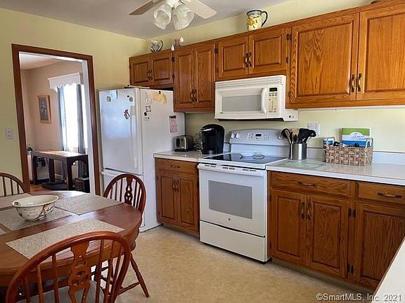 Original owner! Well maintained 2 BR, 2 bath Ranch on level .41 acre fenced lot, wooded behind. Home features newer roof (approx 10 yrs) Newer boiler (approx 5 yrs), central vac, vinyl siding, updated windows (excluding kitchen), hdwd floors, eat in kitchen, updated main level bath, fireplace in living room, large Trex deck w/vinyl railings, oversized 2 car garage (built in shed attached to rear of garage), garage is detached but has a covered breezeway. Home was originally a 3 bedroom but 3rd bedroom was converted to a den. Lower level is partially finished & heated. The bones are there, just needs some updating. taxes may be subject to change. Please check with the town of Waterford for tax amount as the seller has a reduction on her taxes. Easy access to Rte 85 and I 95.