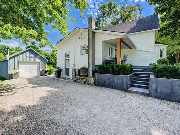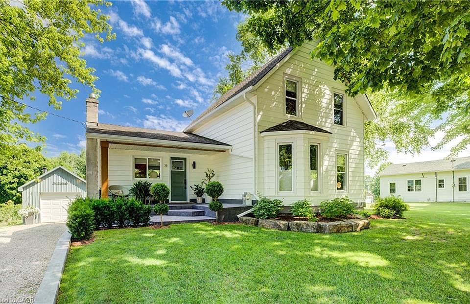 Welcome to 30 McNab Lane in the desirable town of Burgessville, where peace, privacy, and charm come together on nearly an acre of beautifully maintained land. This quiet property offers a stunning backyard oasis with mature trees, raspberry bushes, garden beds, and a chicken coop perfect for those dreaming of farm-fresh eggs and homegrown produce. Enjoy summer days on the large multi-level wood deck featuring a wood pergola with a steel roof, or take a dip in the above-ground pool set on a stone base. Inside, you'll find a beautifully renovated modern wood kitchen with island seating, a spacious dining area, and a large living room with a cozy fireplace. The main floor also includes laundry and a full 4-piece bathroom. Upstairs, there are three generously sized bedrooms, and the basement offers a finished play area ideal for kids or extra living space. This is a perfect blend of country charm and modern comfort in a truly serene location.