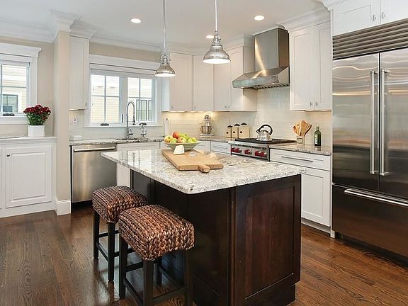 This stunning three-year old townhouse, with four bedrooms and three and one-half bathrooms, offers beautiful finishes, upscale appointments, and wonderful views of the trees and beyond from the two private decks. The main level, with a bright open floor plan, features a kitchen with high-end appliances and a living/dining room with a fireplace and direct access to both decks. There are four bedrooms including a master bedroom suite with two closets and a luxurious bathroom with a steam shower, heated floor, and a marble-topped vanity with two sinks. Amenities offered are a lower level au pair/guest suite, an abundance of storage, a laundry room, a garage parking space with direct entry, and an outdoor parking space.