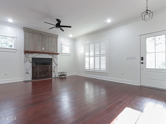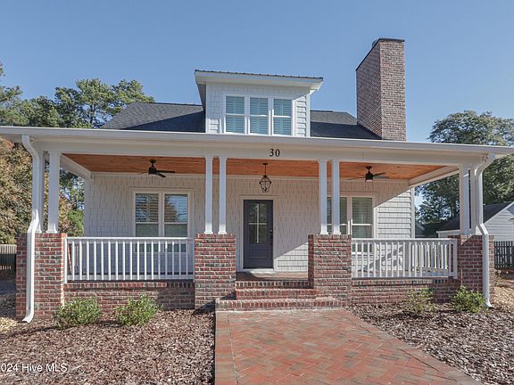 Pinehurst ''New Construction'' in OLD TOWN. WALK TO PINEHURST ELEMENTARY SCHOOL! Seller to consider OWNER FINANCING. Call listing agent for details. One block from the new Pinehurst Elementary School and less than one mile from the Historic Village of Pinehurst. Great old town location near Rassie Wicker Park, walking trails, ball fields and summer splash pad. Stunning new construction with all the features buyers demand - open floorpan, pre-finished 3/4 inch solid Brazilian hardwood, plantation shutters, cooks kitchen, high end appliances, quartz countertop and more. Handsome fireplace with slate surround is the focal point of the main living area. Utility room has a reclaimed sink from the original house on the property plus a slate countertop. Screened porch off the kitchen with access to very large fenced back yard. First floor master bedroom with walk-in closet and wood shelving, plus heated floors and quartz countertop in Master bath. Second bedroom on the first floor with full bath. Upstairs there are two more ensuite bedrooms and large bonus room/game room. Pool table and card table convey. Home has natural gas.