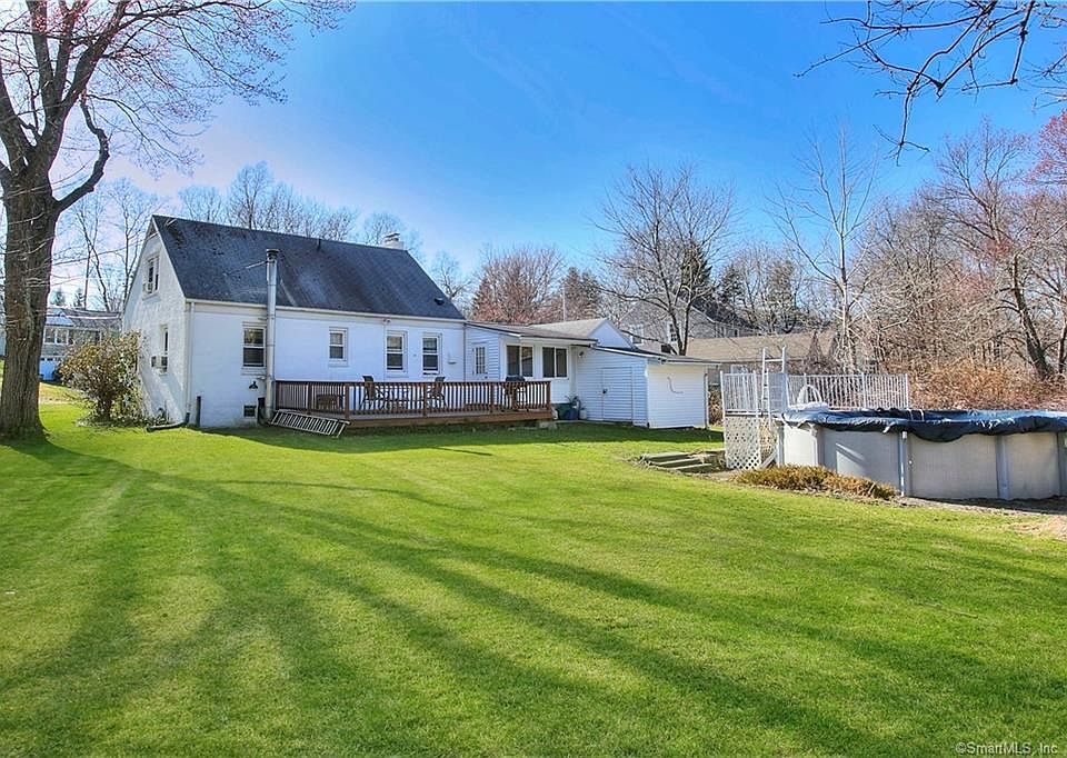 Drive down this family-friendly road and into the driveway of this adorable-cape style home situated on its own half acre of land. Through the front door, hang your coat in the mudroom and step inside the family/dining room to envision relaxing nights by the wood-burning fireplace with built-in bookshelves. The newly remodeled chefs kitchen was designed with todays trends in mind. The marble-tile backsplash behind granite counters sit above and below the new white cabinets and stainless-steel appliances. Adjacent to the kitchen, step inside the enclosed sunporch with exposed wood beams and vaulted ceiling or out onto the shaded-oversized deck. Enjoy a tranquil view while overlooking the large landscape with an above ground pool and a tree-line backdrop offering seclusion on summer days. An entertainer's delight! On the second level, find two large bedrooms with built-in closets and hardwood flooring. Note- two additional bedrooms on the main floor were converted into a large-open living room but can easily be converted back (structural beam is still in place). This home has been well maintained/cared for by the current owners for 20+ years and are ready to pass it onto the next family who will do the same. Located close to all the shopping, dining, recreation and convenient transportation that Trumbull has to offer!