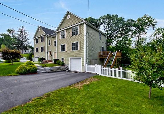 Immaculately maintained townhouse built in 2011 with more than 2000sqft of living! Featuring an attached 1 car garage which enters into a large finished basement with ceramic tile (amazing hot tub included!) and great storage area. The main level welcomes with gleaming wood floors and a fireplaced family room. The wide open kitchen and dining area are flooded with natural light and feature a slider to a deck which overlooks a beautiful private yard. The second level features a full bath and 3 bedrooms including a master bedroom with a private ensuite bath. Enjoy a low maintenance lifestyle while having the feel of a single family home in a location that offers a close proximity to major highway access, commuter rail as well as a the upcoming Woburn Mall area which will offer a number of top shops and restaurants.
