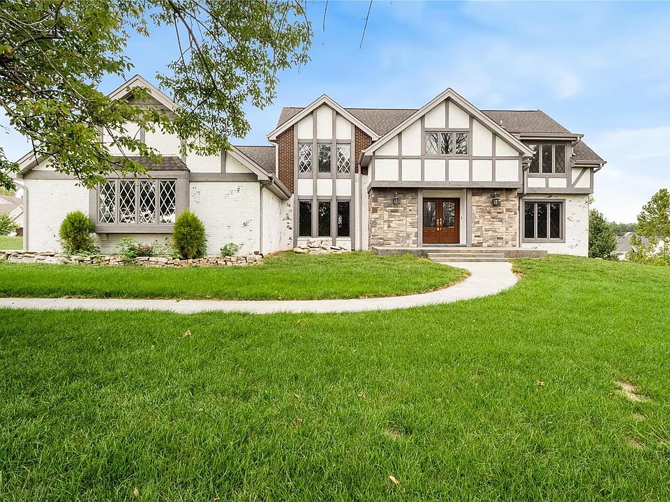 Unique tudor home on a cul de sac with over an acre lot  featuring a 3 car side entry garage and brand new roof! Instantly fall in love when you enter 2 story entry foyer w/ winding staircase. Formal dining room has a coffered ceiling, huge great room has built in bookcases, wet bar & atrium door to deck. Spacious kitchen/breakfast combo w/SS appliances & ample counter space. Main floor laundry w/spiral staircase up to private hall leads to upper level primary bedroom with 2 closets & luxury bath w/whirlpool tub & sep shower. Add'l 3 bdrms & full bath upstairs. Walk-out basement has a rough in bath ready to be finished. Quick drive to everything Wentzville has to offer!