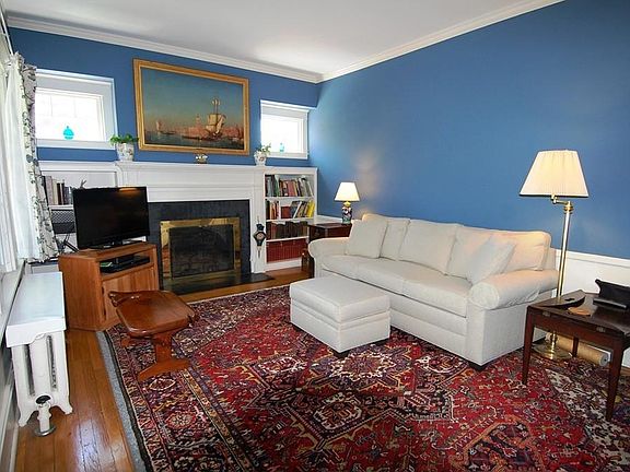 Live in the heart of Padanaram Village - Living room with center fireplace and built-in bookcases, wood flooring, wainscoting and crown moldings. Formal dining room with built-in china cabinet, wood flooring and chair rail. Renovated kitchen with sliders leading to deck for summer entertaining and dining alfresco which overlooks private backyard and gardens. Sitting room with window set open to kitchen. Sun room filled with windows and closet. First floor full bath. Second level of living has 4 Bedrooms with wood flooring, office and full bath. Walk-up attic. Inviting front porch. Full basement with new state of the art boiler and hot water heater (3 zones of heating). 2 car garage with new doors and driveway. This home is ideally situated on a corner lot with, mature blueberry bushes, Japanese maple and magnolia trees, hosta, hydrangea, perennial flower gardens and walled in garden. Walk to Panararam Village shops, restaurants, yacht club, market and picturesque waterfront.