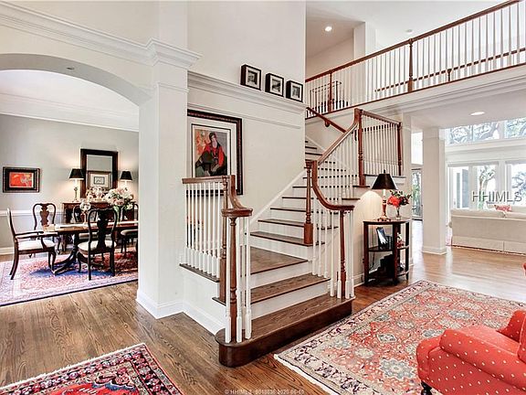 Colleton has very few marsh front homes with a dock plus quality construction and like new condition. Fabulous privacy located at the end of cul-de-sac. Watch the dolphin and redfish come in with the tides on your spacious screened porch! Kitchen is a chef's delight with an abundance of quartz counters, double ovens, double dishwashers, Miele Steamer, new Wolf gas cooktop and large pantry. 3 fireplaces, hardwood floors and all bedrooms have en suites. Also includes bonus rm & bath, library/study, multi-function rm and office w/dual work stations plus an outdoor kitchen!