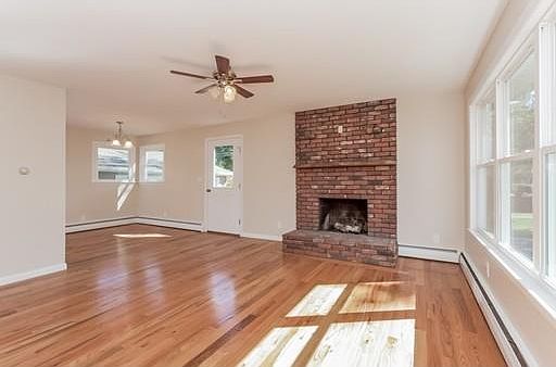 Newly renovated ranch with a insulated two car garage and attached shop with separate 200 Amp electric service. Level one and one half acre lot with a small pond and stream with bridge and benches and several apple trees. House has new doors, insulated windows, vinyl siding, roof shingles, bath , kitchen with granite countertops, hot water tank, hardwood floors, carpets, garage doors with openers
