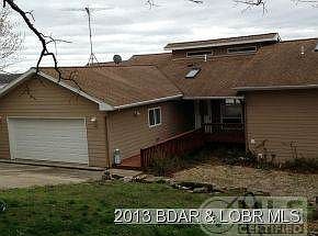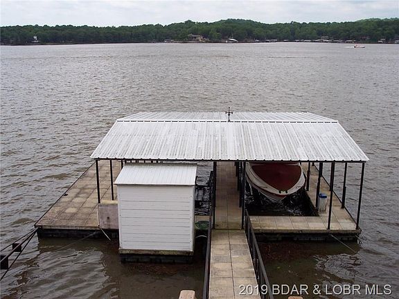 4 mile views of fabulous 45MM Lake of the Ozarks. 4-5BR/3 full bath lakefront home boasts skylighted, vaulted ceilings with open main level floor plan. Wood burning fireplace in LR. Master suite with huge walk in closet. Another bedroom with bonus room and fully equipped kitchen (all appliances) that opens to screened porch. Kitchen, LR and dining area are all tiled. Lower level family room with wet bar and theater area. Lower level includes 2 bedrooms and another full bath. Both levels have washer/dryer hookups. Home includes a 2 car attached garage and large driveway for extra parking. 2 well covered dock with swim platform, 2 boat lifts, dock locker and stiff arm. Beautiful natural rock seawall. Home has newer roof, newer decking to dock and trexdeck in screen in porch area. This home is a must see. Amazing main channel views!