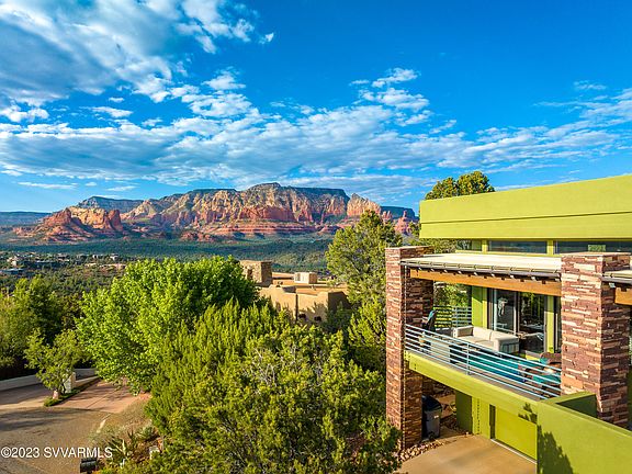 Discover this Sedona gem with stunning 180-degree red rock views! Nestled by the national forest service, this home offers 3Be/3Ba + office. Enjoy indoor/outdoor living, a tranquil cul-de-sac location, and no HOA restrictions. Features include a gourmet kitchen, luxurious master suite, expansive patio, and easy access to hiking trails. Additional highlights: 2 workshops, 2 walk-in pantries, wet bar, kitchen island, granite countertops, koi fish water feature, potential 4th bedroom, Viking & Thermador appliances, tile flooring, vaulted ceilings, solar panels, spa hookup. Experience Sedona's allure in this exceptional retreat. Nestled amidst the awe-inspiring beauty of Sedona, this remarkable home offers stunning 180-degree views of the renowned red rocks. With a seamless indoor/outdoor living design, it allows you to immerse yourself in the natural splendor. This property holds a commanding position, backed by the pristine expanse of the national forest service. Boasting 3 bedrooms, 3 bathrooms + den (3Be/3Ba), it provides both comfort and versatility. Situated in a tranquil cul-de-sac, it ensures privacy and peace. No HOA restrictions and the potential for short-term rentals enhance its appeal.